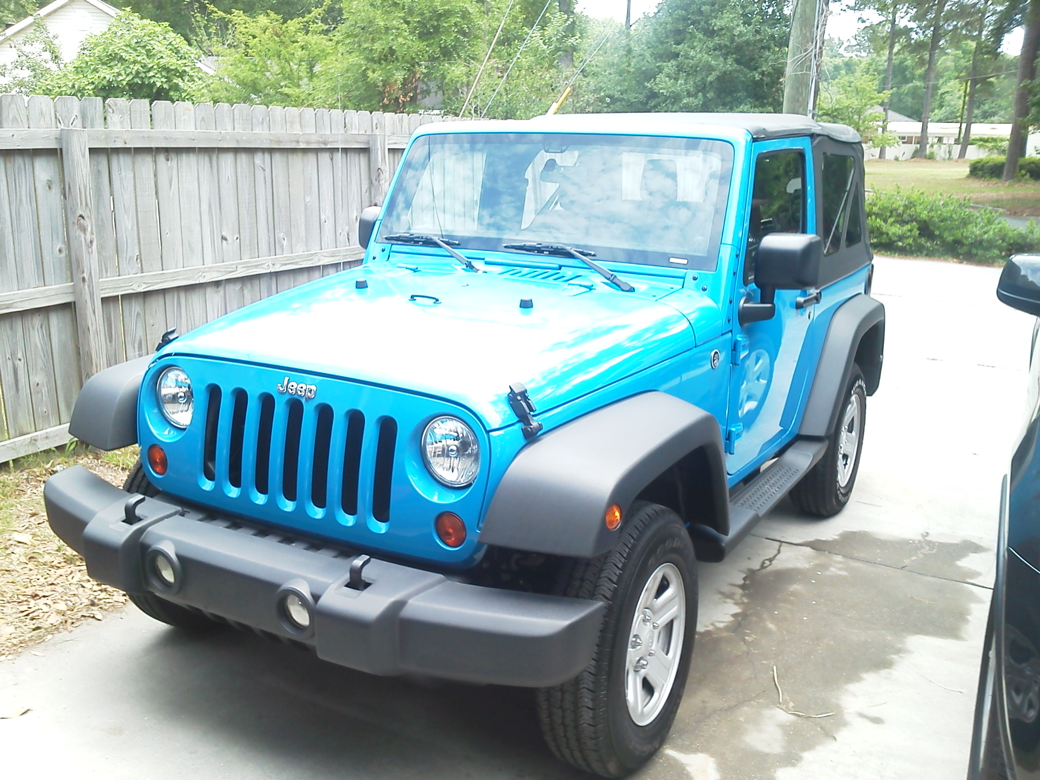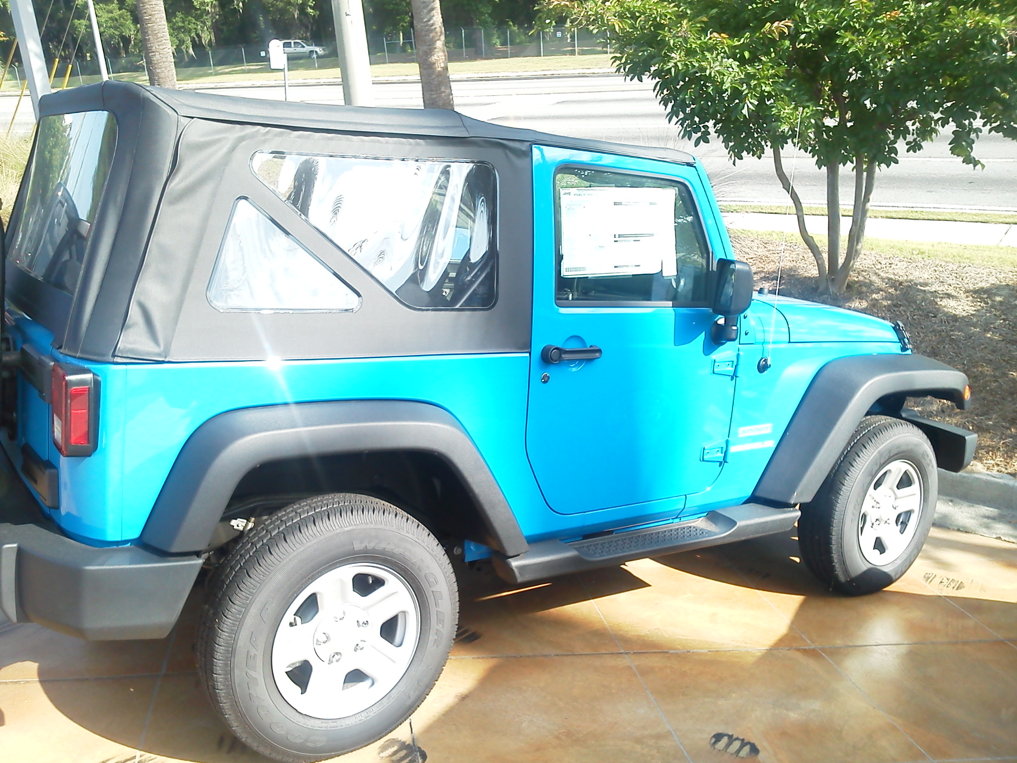 I bee-bopped, yes, bee-bopped on down to the Chrysler dealer to look at Jeep Wranglers. OK, I’ll be honest. I went to buy a Jeep Wrangler. I’d already looked at them and did the research back in the winter. Now I had an excuse. I met with the salesman and we started the journey. There were only two on the lot that was both in my reach financially and that I wanted. I went down there thinking I wanted a black one. The black one was an automatic transmission and about $2000 more money. The other one was a bright blue or as Jeep calls it “Cosmos Blue”. It was the cheapest of the wranglers and exactly what I wanted other than the color. Then I drove it. I fell in love and lust at the same time. He had me by the proverbial balls. With approval from Michele about the color I did the deal. This Jeep is as base model as they sell them. The only extra accessory were the step rails. It was standard shift and had air conditioning. All I needed. the color grew on me before I left the lot. We completed the deal fairly quickly and I was off to the house to put the top down and head to the beach.
