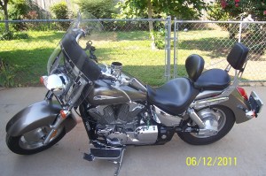 As I started on the plate holder I had Jake take off the seats and work on the cushion detail. It took us an hour but we got it all done. I even charged up my Bluetooth device that allows me to listen to music from my cell phone while I ride. We checked the tire pressure and reassembled all of the parts. I checked the lights and sat on the seat cushion to make sure it was where I wanted it. It was all perfect and I couldn’t wait to get on the road the next day.